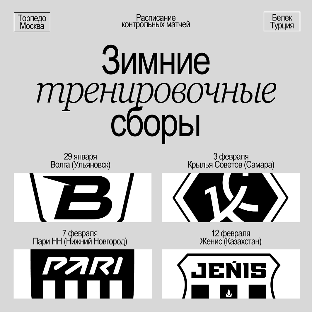 РАСПИСАНИЕ КОНТРОЛЬНЫХ МАТЧЕЙ «ТОРПЕДО» НА СБОРАХ В БЕЛЕКЕ